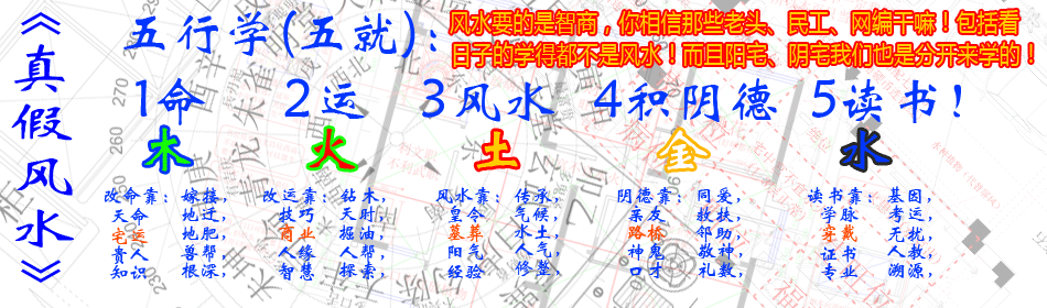 由十幾年開始,就有不少人問過我:關于網傳的: “一命二運三風水,四積功德五讀書;”六名七相八敬神,九交貴人十養生。十一擇業與擇偶,十二趨吉及避兇,十三逢苦要無怨,十四不固執善惡,十五榮光因緣來;(六以上完全變味了!其實6以上網絡時代的產物!也可能是近代心機者亂撰的,并且本人可以直接定義他不懂傳統文化和常規的中國習俗!) 類似的東西很多,如什么《風水十一古訓》,我都笑死了,就幾個字而已,他們可以天天寫,又不用理出處,也不記名,就比如QQ有個風水部落,各種天天毫無根據亂講,人家一問就讓私聊,所以我就拿公開講的雞毛蒜皮開刷,因為也是錯的,因為我拿風水知識,來揭他的老底,他拿這個來堵我的嘴,所以我連他這個也砸了,問他出處,然后又無下文了,一問五行也說不明白,一拿他們亂說的找現實給他,或讓他給上現代的出來也沒有,就一伙人互稱大師,原因很簡單,中國人,一般正統的東西,過十無單數,十一算什么鬼缺一門嗎?然后發現除了讓人家給錢,沒有一點用處!不準任何人可以質疑他,但凡一個認真學過玄學的人,都不會認為6以上是真的!很多玄學者也都出來證明6以上是假的;但謠言不是一兩句話就可以否決的! 1命2運3風水4積陰德5讀書,五行架構(2、5、9為古代學者(讀書人)最常用的一種分類述事體,1、3、4、8為第二常用的架構,67相對少用,叫法‘五命’或‘五就’!是五種主要因素;玄學占比小;成敗是看五種因素互相影響的結果!這里的‘命’:玄學和意志2成+天命(包括政治、出身、相貌)8成;‘運’:機緣2成+時局8成!風水:玄學2成+常識8成;‘積陰德’:善心2成+禮智8成!讀書(知識):努力4成+技巧4成+天賦2成!可以看那8成的常識!所以不是有成就,就能說風水好!有可能換任何風水,結果都一樣!其實有沒成就,是什么成就,要看的是它們互相之間相加的結果! 如:狀元=風水+讀書(+命+德+運),那寄宿呢; 另一種比喻:(命)出身、(運)天時、(風水)地利、(積陰德)人和、(讀書)技巧;五行為:木、火、土、金、水!6以上的說法,80年代以后網上出現的,查無出處,知名風水師除了否認其的真實性,沒人敢說到6以上!